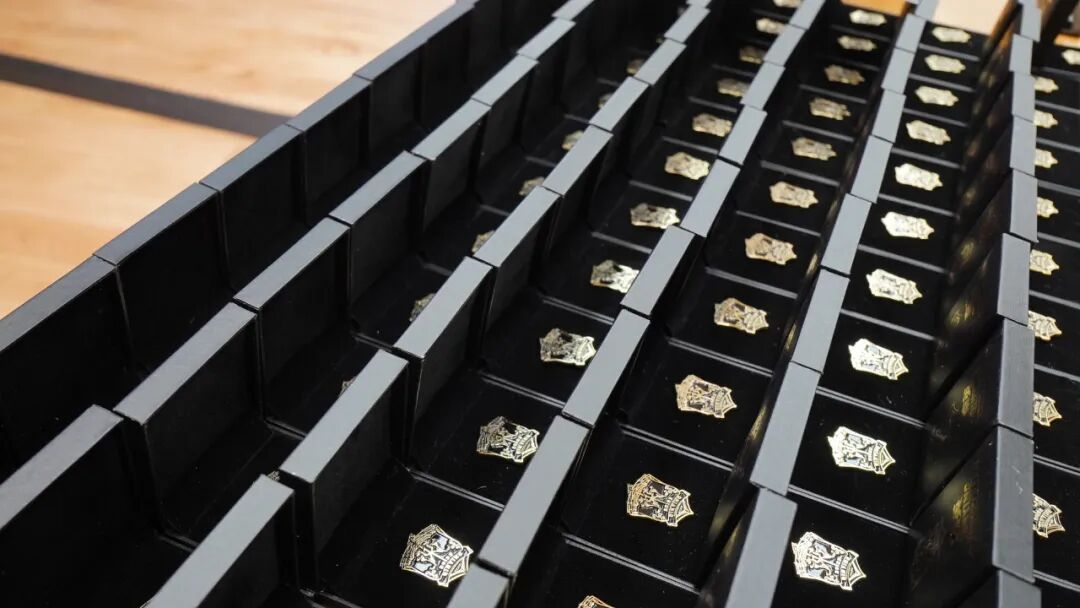 大会最后为每一位秦英员工颁发徽章。戴上这枚徽章,我们就是同心同行的一家人,从此以后同进退,共命运!